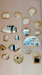 Verkrijgbaar in speelse en unieke vormen zoals rond, ovaal, oog, druppel en meer – elk stuk is omlijst met warm goudkleurig koper.